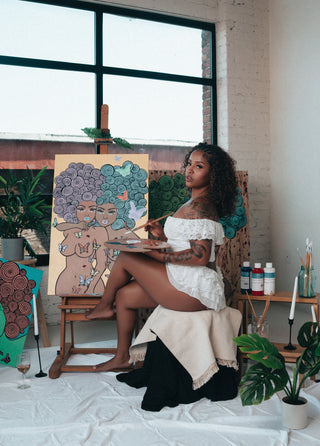 "Girl with Bop Bunz" original painting 24x24"