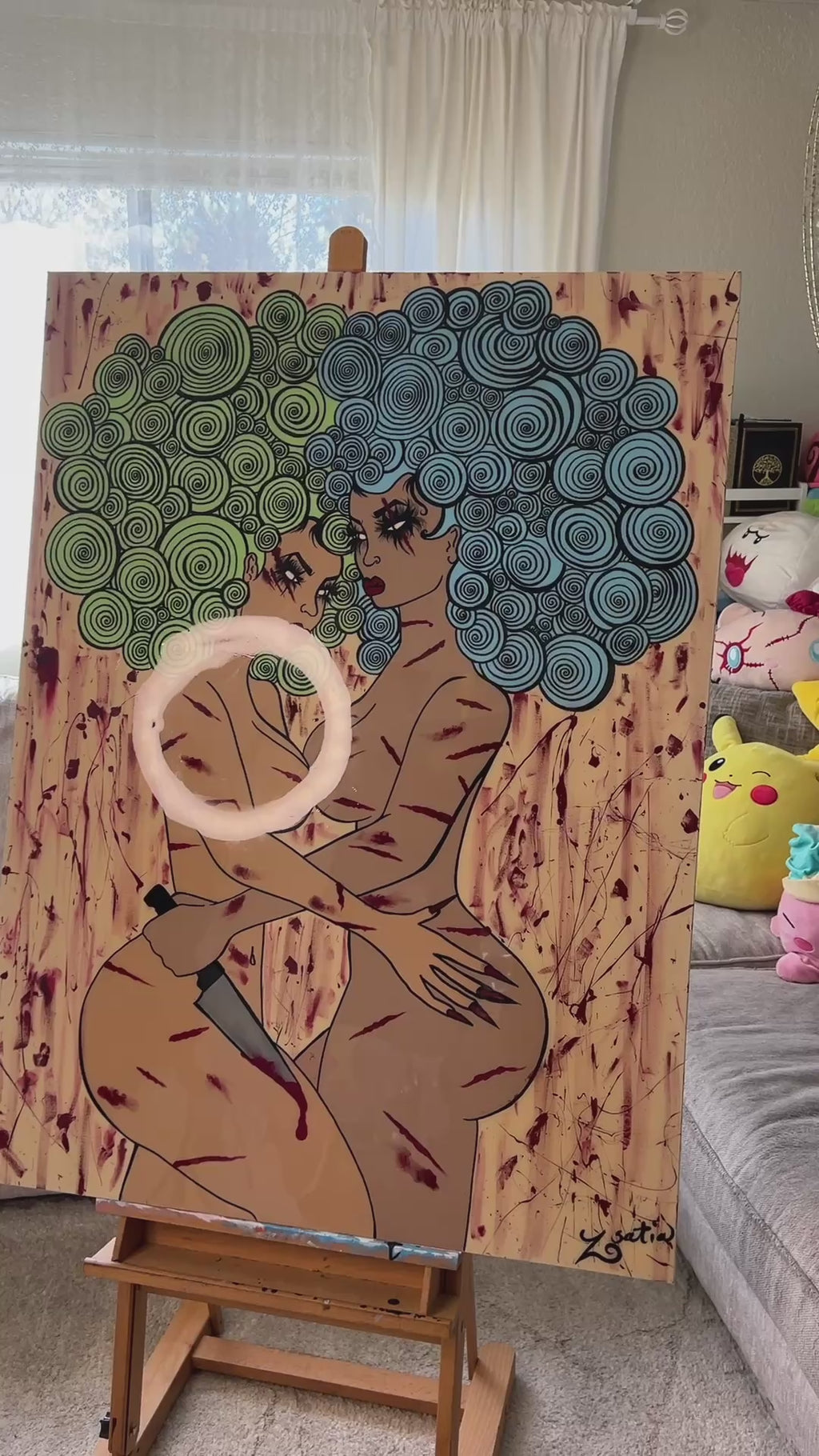 "Angry Princesses" original painting 36x48" (resin finish)